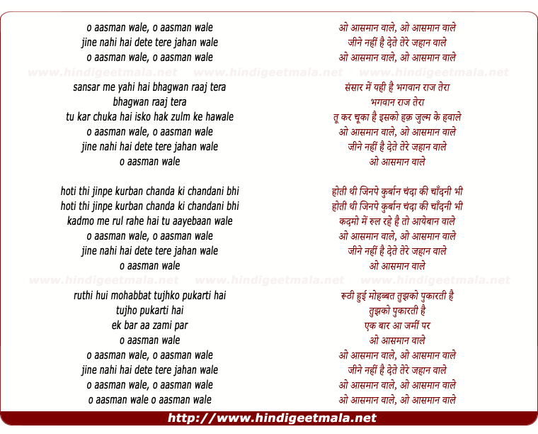 Lyrics of O Aasaman Wale Jeene Nahi Dete - ओ आसमान वाले जीने नहीं देते