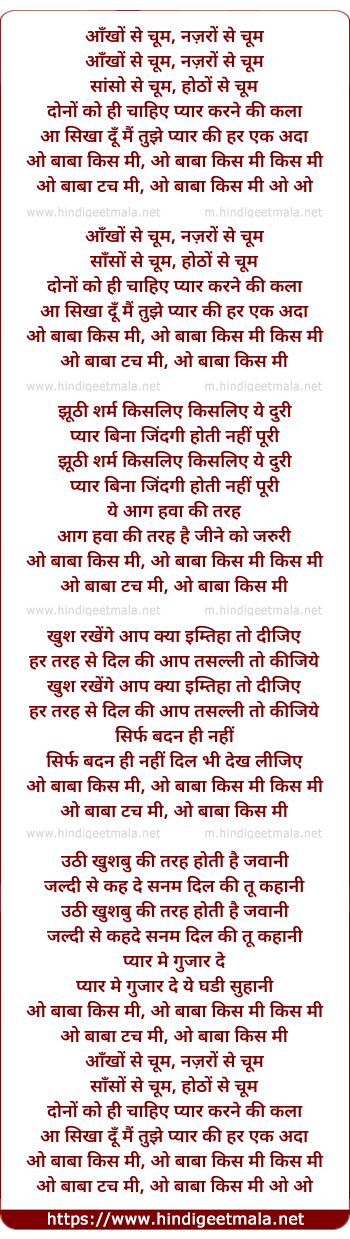 Lyrics of O Baba Kiss Me - ओ बाबा किस मी