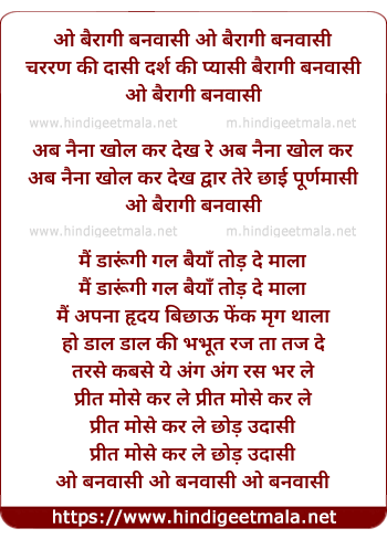 Lyrics of O Bairagi Banwasi Charano Ki Dasi - ओ बैरागी बनवासी चरणों की दासी