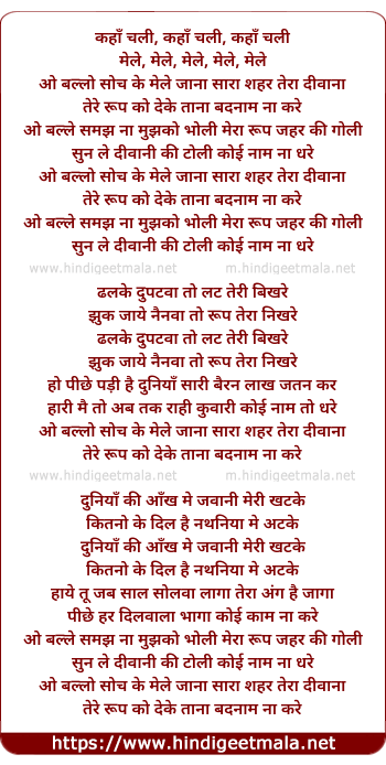 Lyrics of O Ballo Soch Ke Mele Jana - ओ बल्लो सोच के मेले जाना