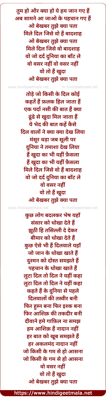Lyrics of O Bekhabar Tujh Kya Pata - ओ बेखबर तुझे क्या पता