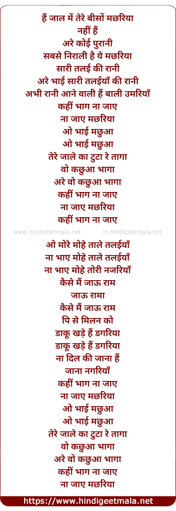 Lyrics of O Bhai Machua Tere Jale Ka Tuta - ओ भाई मछुआ तेरे जाले का टुटा