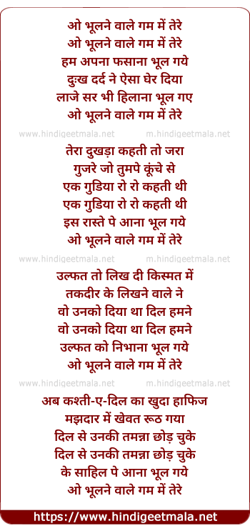 Lyrics of O Bhulne Wale Gham Me Tere Hum Apna - ओ भूलने वाले गम में तेरे