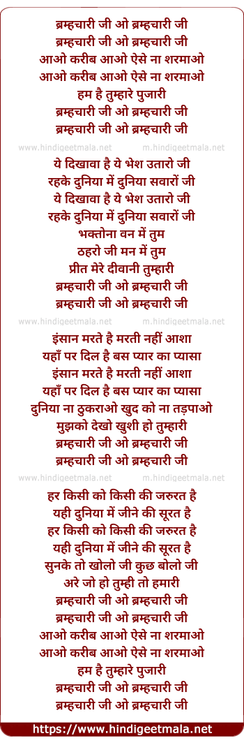 Lyrics of O Bramhchari Ji - ओ ब्रम्हचारी जी