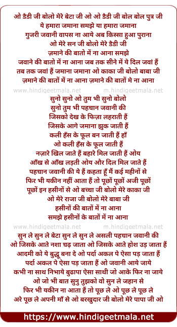 Lyrics of O Daddy Ji Bolo Mera Beta Ji - ओ डैडी जी बोलो मेरे बेटा जी
