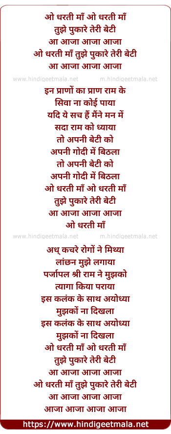 Lyrics of O Dharti Ma Tujhe Pukare Teri Beti - ओ धरती माँ तुझे पुकारे तेरी बेटी