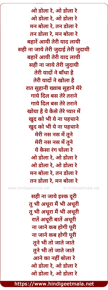 Lyrics of O Dhola Re - ओ डोला रे, ओ डोला रे