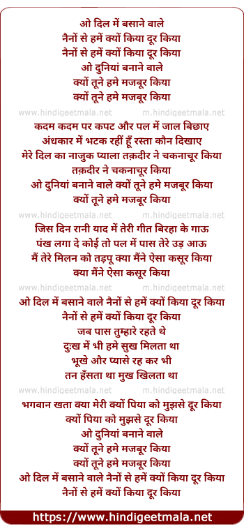 o dil basane wale naino se hume kyu dur kiya