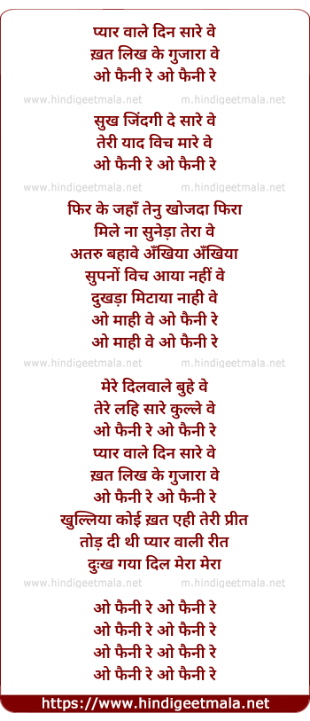 Poetic Translation - Lyrics of O Fanny Re - ओ फैनी रे