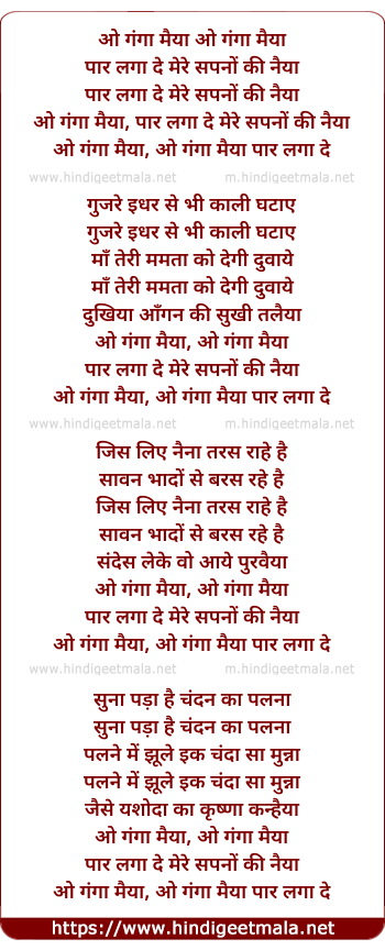 o ganga maiya, par laga de mere sapano ki naiya