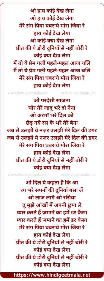 Lyrics of O Haay Koi Dekh Lega - ओ हाय कोई देख लेगा