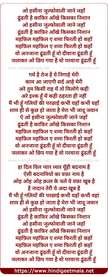 Lyrics of O Hasina Julfowalee Jane Jahan - ओ हसीना जुल्फोवाली जाने जहाँ