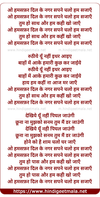 Lyrics of O Humsafar Dil Ke Nagar - ओ हमसफ़र दिल के नगर