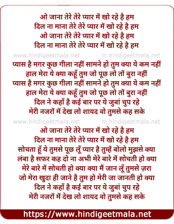 Lyrics of O Jaana Tere Pyaar Me - ओ जाना तेरे प्यार में