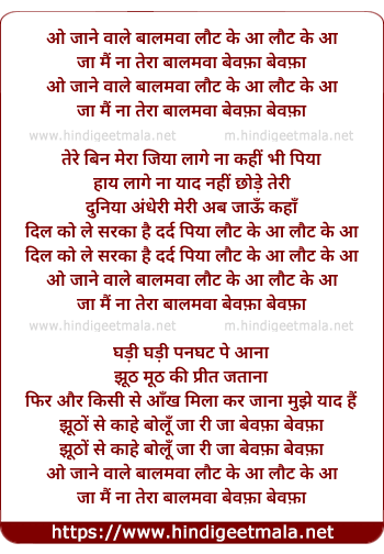 Lyrics of O Jaane Wale Balamwa Laut Ke Aa - ओ जाने वाले बालमवा लौट के आ लौट के आ