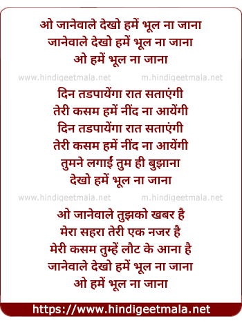 Lyrics of O Jaane Wale Dekho Hume Bhool Na Jaana - ओ जानेवाले देखो हमें भूल ना जाना