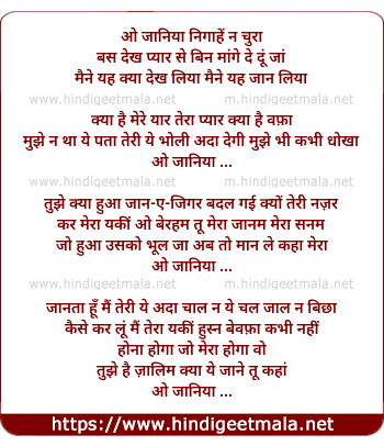 Lyrics of O Jaaniyaa Nigaahen Na Churaa - ओ जानिया निगाहें न चुरा