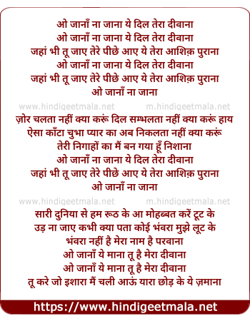 Lyrics of O Jana Na Jana Ye Dil Tera Diwana - ओ जानाँ ना जाना ये दिल तेरा दीवाना