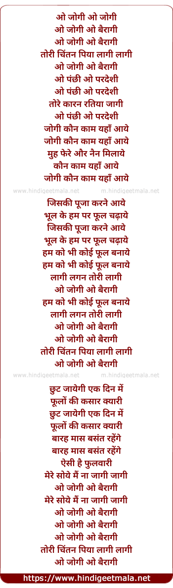 Lyrics of O Jogi O Bairagi - ओ जोगी ओ जोगी
