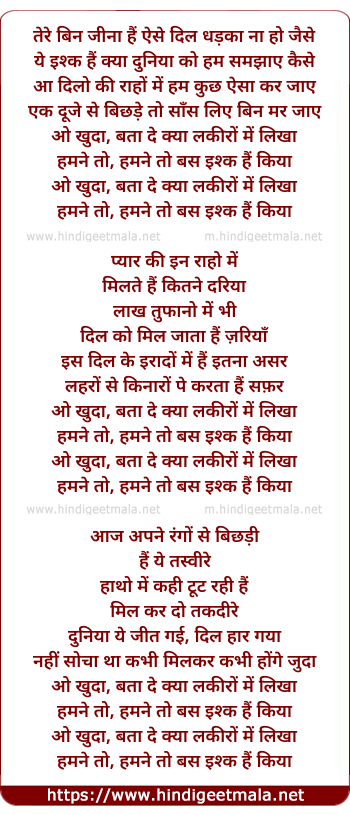Lyrics of O Khuda - ओ खुदा