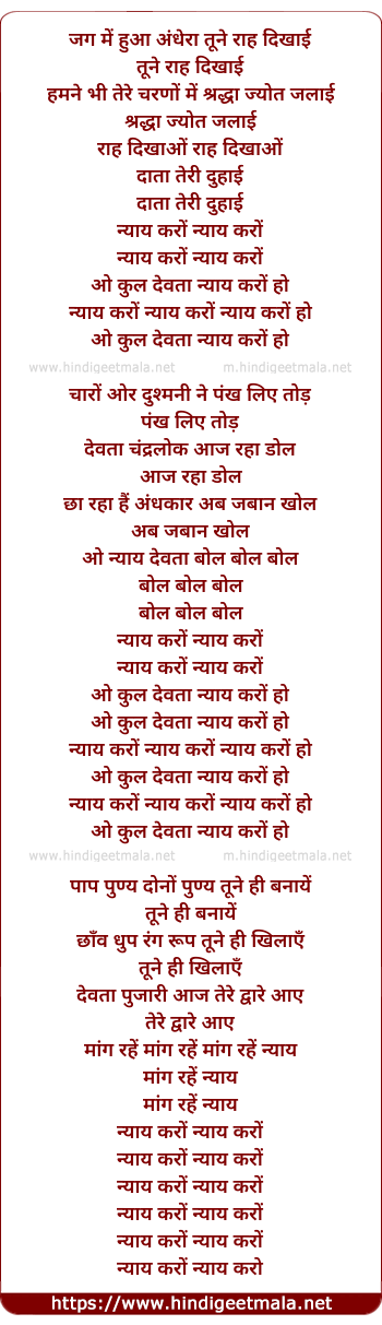 Lyrics of O Kul Devta Raksha Karo - ओ कुल देवता श्रद्धा करो