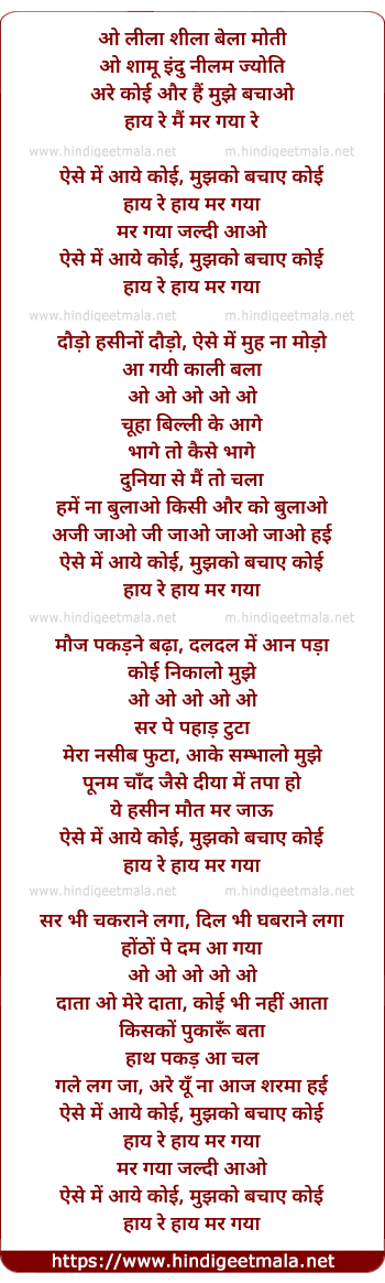 Lyrics of O Leela Sheela Bela Moti - ओ लीला शीला बेला मोती