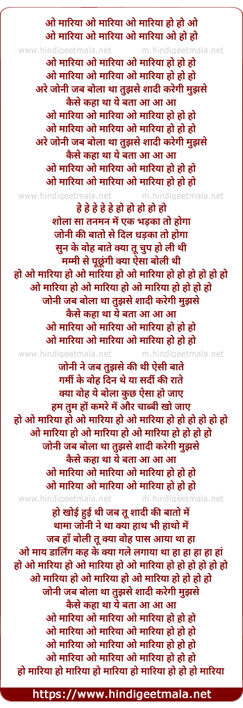 Lyrics of O Maaria O Maaria O Maaria - ओ मारिया ओ मारिया ओ मारिया