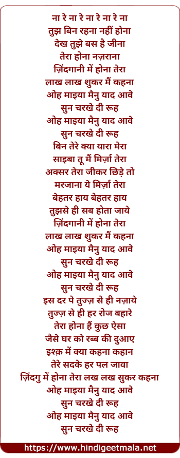 Lyrics of O Maiya Mainu Yaad Aave - ओ माइया मेनू याद आवे