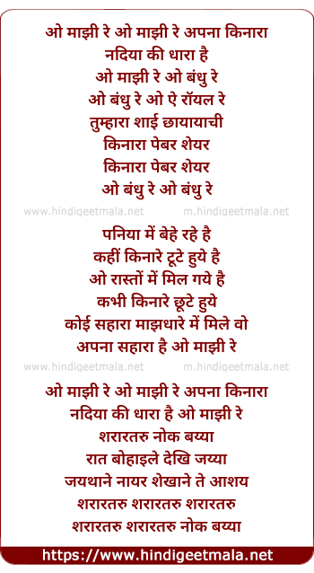 Lyrics of O Majhi Re O Majhi Re - ओ माझी रे ओ माझी रे