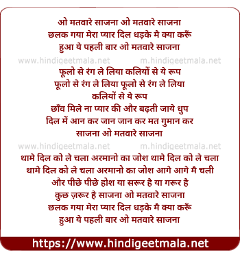 Lyrics of O Matware Saajna - ओ मतवारे साजना