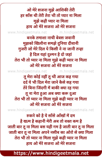 Lyrics of O Mere Sajna Mujhe Aashiqi Teri - ओ मेरे सजना मुझे आशिकी तेरी
