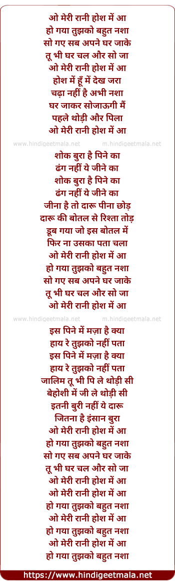 Lyrics of O Meri Rani - ओ मेरी रानी