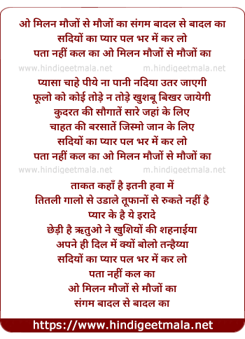 Lyrics of O Milan Maujon Ka - ओ मिलन मौजों का