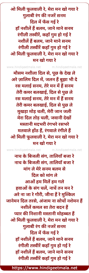 Lyrics of O Mili Phoolwaali Re - ओ मिली फूलवाली रे