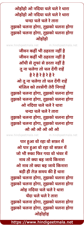 Lyrics of O Nadiyaa Chale Chale Re Dhaaraa - ओहोहो ओ नदिया चले चले रे धारा