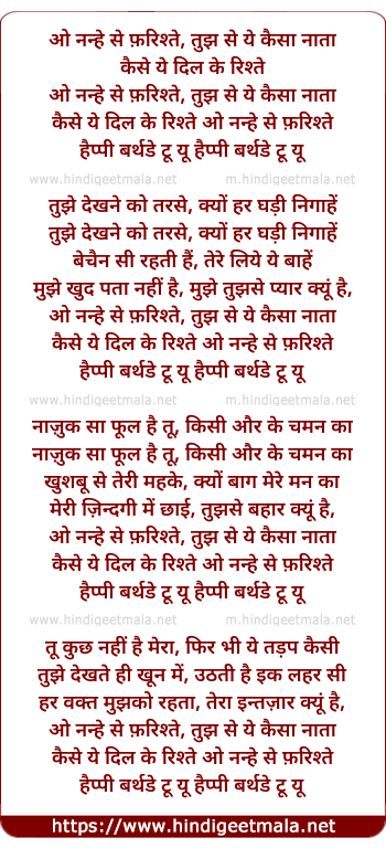 Lyrics of O Nanhe Se Farishte, Tujh Se Ye Kaisaa Naataa - ओ नन्हे से फ़रिश्ते, तुझ से ये कैसा नाता