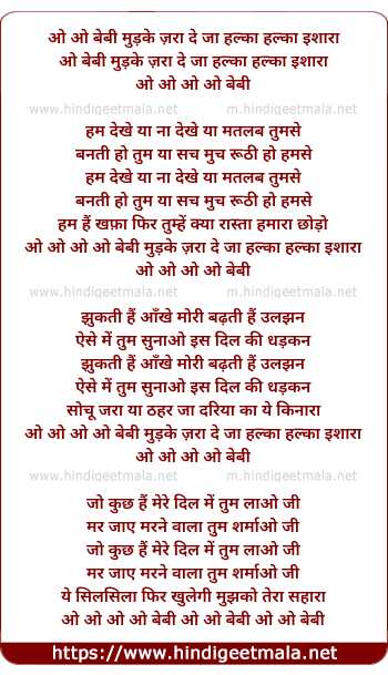 Lyrics of O O Baby Mudke Zara - ओ ओ बेबी मुड़के ज़रा