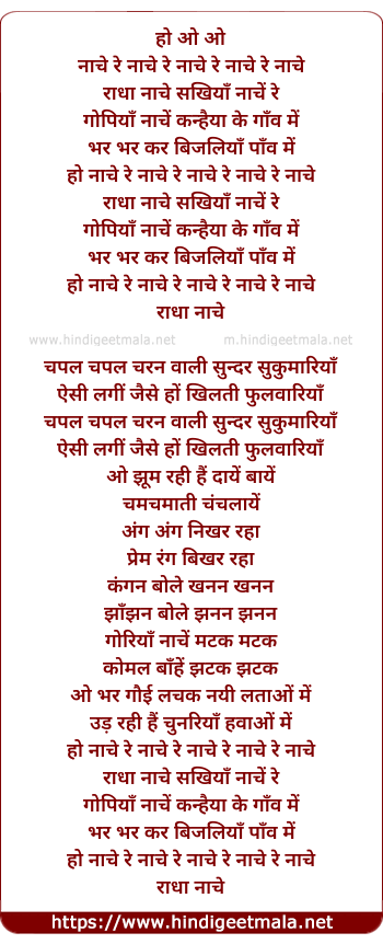Lyrics of O O Naache Re Raadhaa Naache Sakhiyaan Naachen - हो ओ ओ