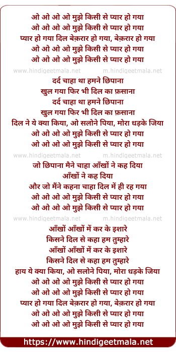 Lyrics of O O O O Mujhe Kisi Se Pyaar Ho Gayaa - ओ ओ ओ ओ मुझे किसी से प्यार हो गया