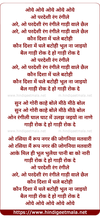Lyrics of O Pardeshi Ran Rangile - ओ परदेशी रंग रंगीले