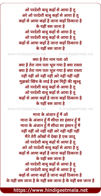 Lyrics of O Pardesi Babu - ओ परदेशी बाबू