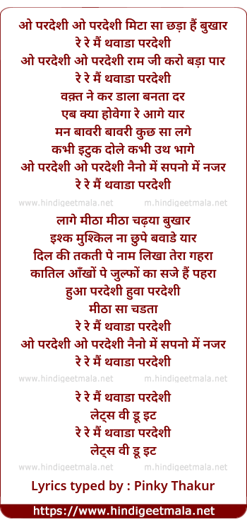 Lyrics of O Pardesi, O Pardesi - ओ परदेशी ओ परदेशी मिटा सा छड़ा हैं बुखार
