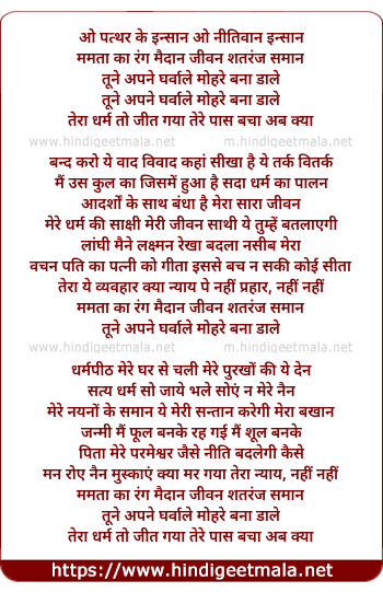 Lyrics of O Patthar Ke Insan - ओ पत्थर के इन्सान