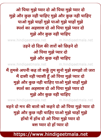 Lyrics of O Piya Mujhe Pyar Do - ओ पिया मुझे प्यार दो