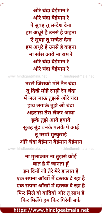 Lyrics of O Re Chandaa - ओ रे चंदा
