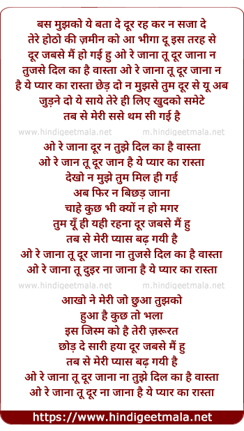 o re jaana tu door jaana na hai ye pyaar ka raasta
