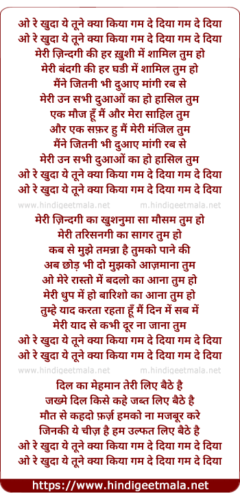Lyrics of O Re Khuda Ye Tune Kya Kiya - ओ रे खुदा ये तूने क्या किया