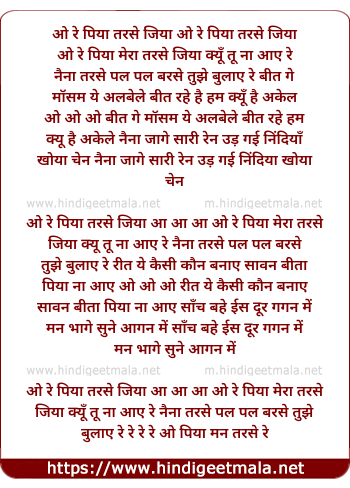 o re piya tarse re jiya o re piya tarse jiy