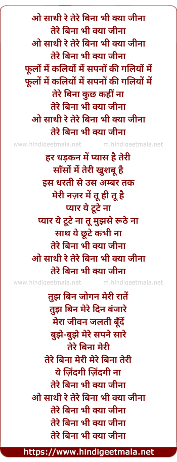 Lyrics of O Saathi Re Tere Bina - ओ साथी रे तेरे बिना