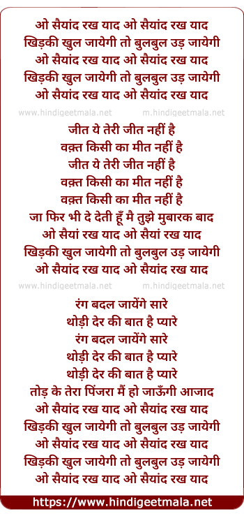 Lyrics of O Saiyaad Rakh Yaad - ओ सैयांद रख याद